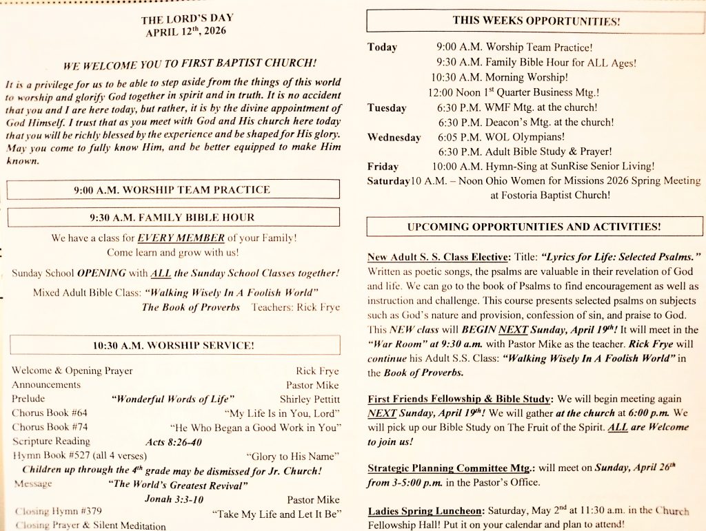 Sunday Bulletin 4/12/2026