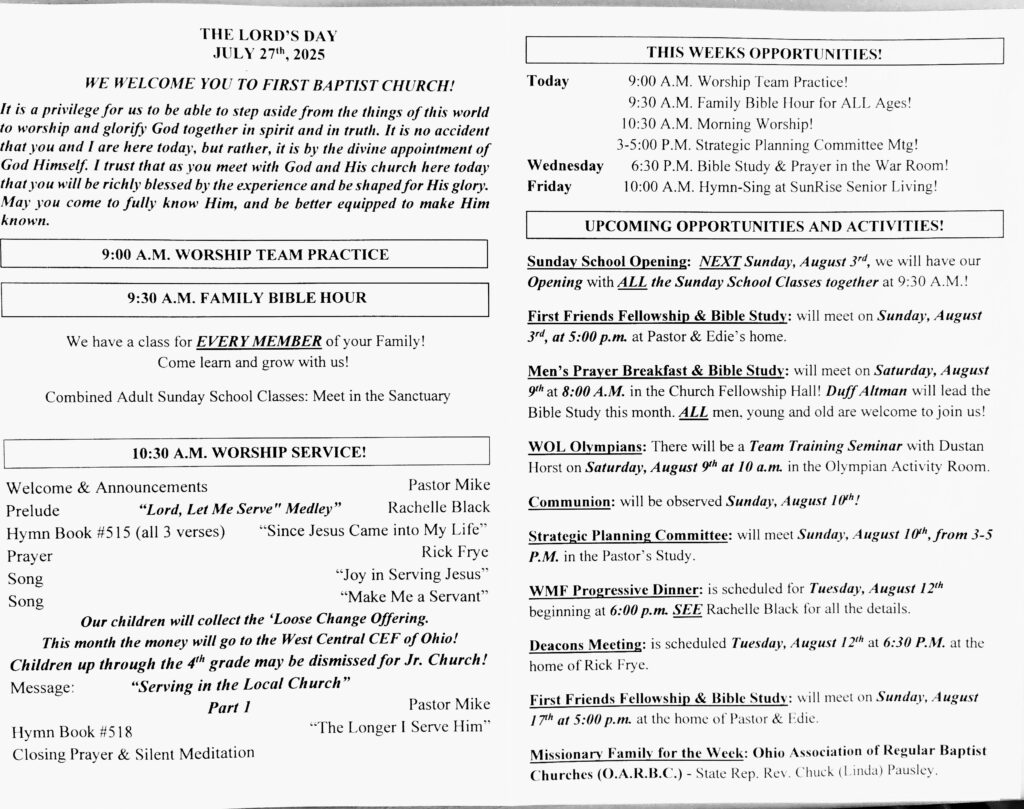 Sunday Bulletin 7/27/2025